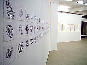 Andrés Bancalari, Mariana Stegmayerund Marcelo Fabricio Totis13. Januar bis 03. Februar 2005 Hombre Cactus Andrés Bancalari: Estructuras (2001 - 2002), Zeichnungen (links) Mariana Stegmayer: Zeichnungen