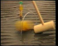 ".....Die angeschlagene Krocketkugel kommt nicht zur Ruhe, weitertransportierend ihren Drall und Effet in immer neuen Stößen und Stoßvarianten, sich potenzierend in einem Abbild ihrer selbst von dem ersten, noch zögerlichen Schlag......"