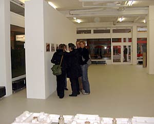 Wir wiedereröffnenArbeiten von acht KX.-Mitgliedern - 10. Mai bis 19. Juni 2003 Besucher vor der Fotoserie "Wägen" von Stefan Canham