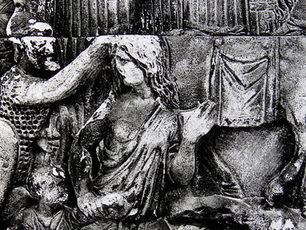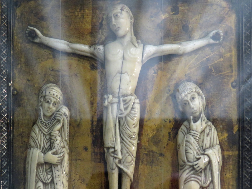 Buchdeckel mit Kreuzigung aus Walrosszahn (Detail)