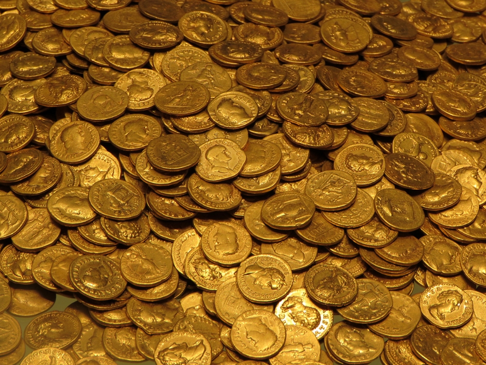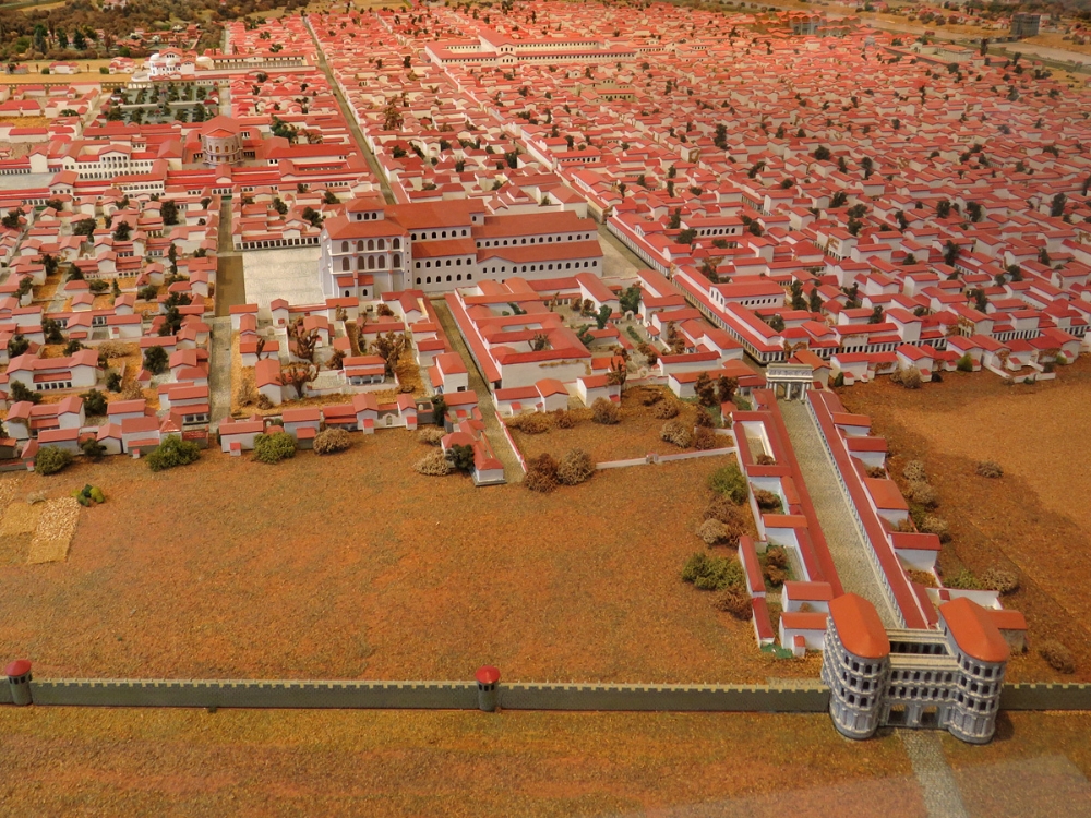 Konstantinbasilika und Sesterz des Marcus Aurelius