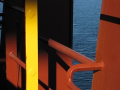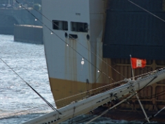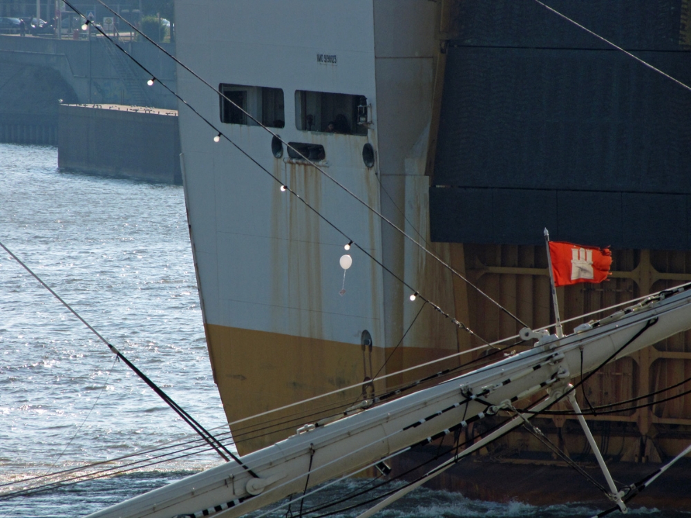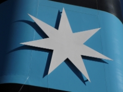 Schornstein der Majestic Maersk mit Stern der Maersk-Line